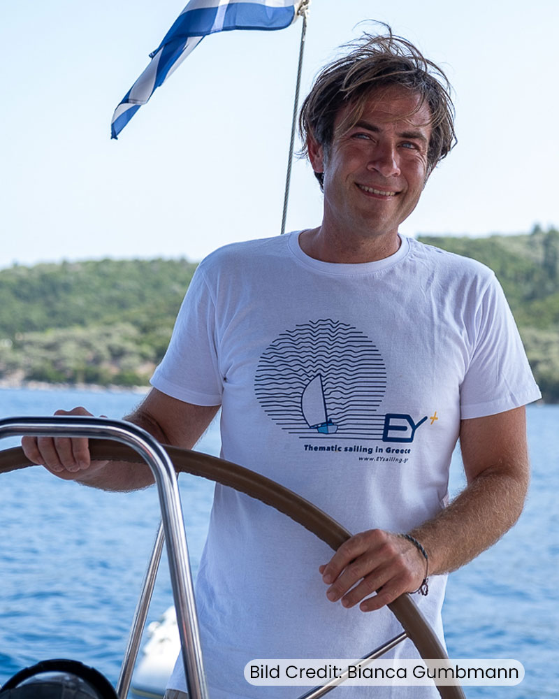 Mit unserem erfahrenen Skipper Ilias tauchst du ein in die Welt des Segelns. Du kannst das Steuer selbst übernehmen, beim Setzen der Segel helfen oder dich einfach vom Wind und Wasser treiben lassen und dabei die Weite des Ionischen Meeres genießen.