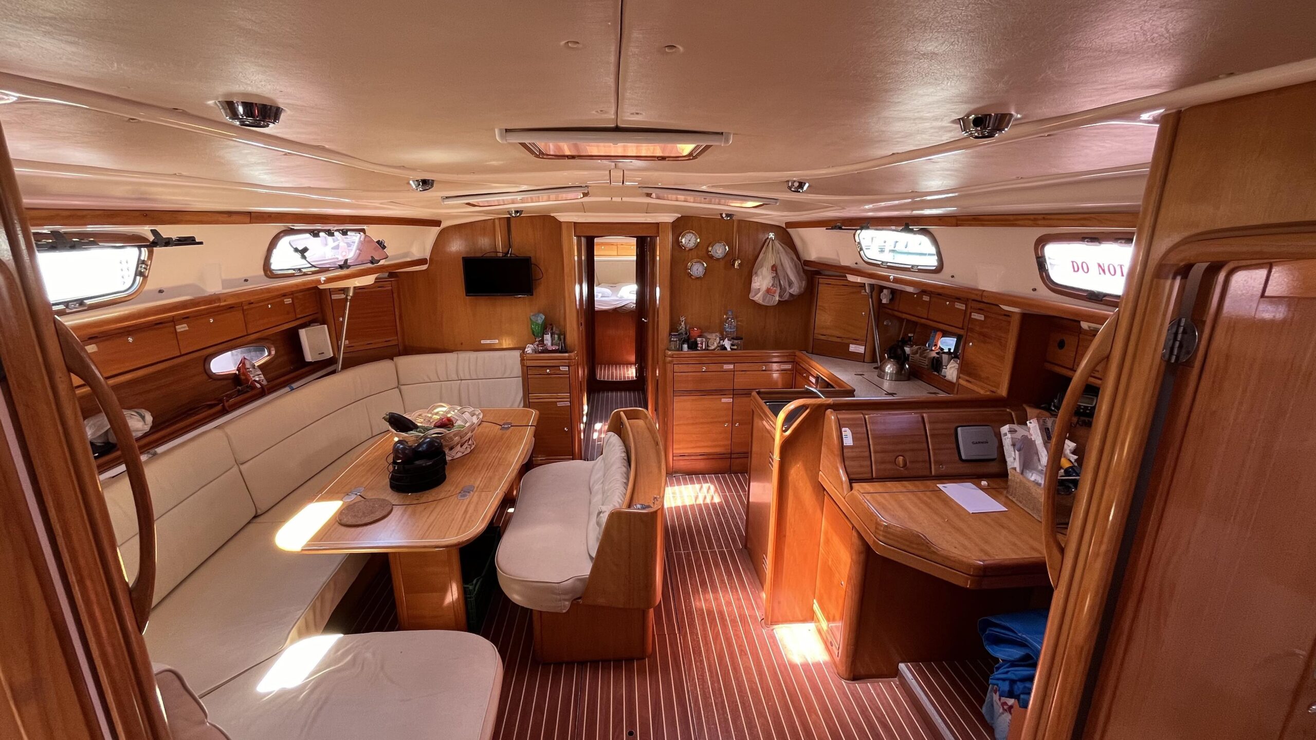 Phoebe ist ein geräumiges Segelboot mit fünf Kabinen, drei Waschräumen, Küche und gemütlichem Salon. An Deck laden Sitz- und Liegeflächen zum Verweilen ein – dein schwimmendes Zuhause im Ionischen Meer.